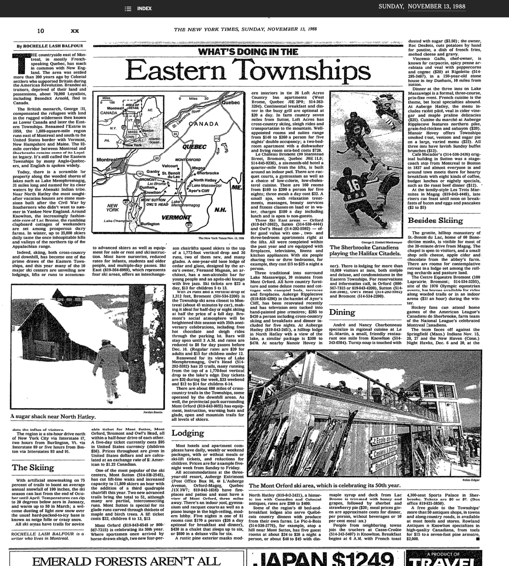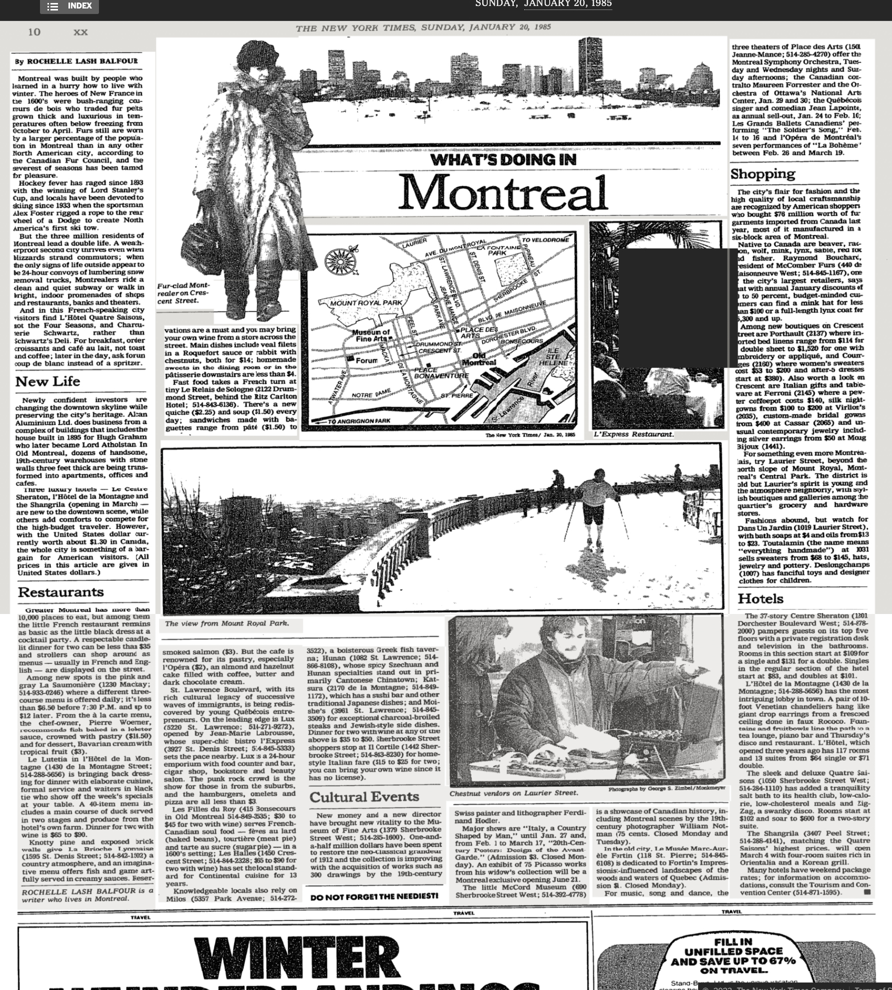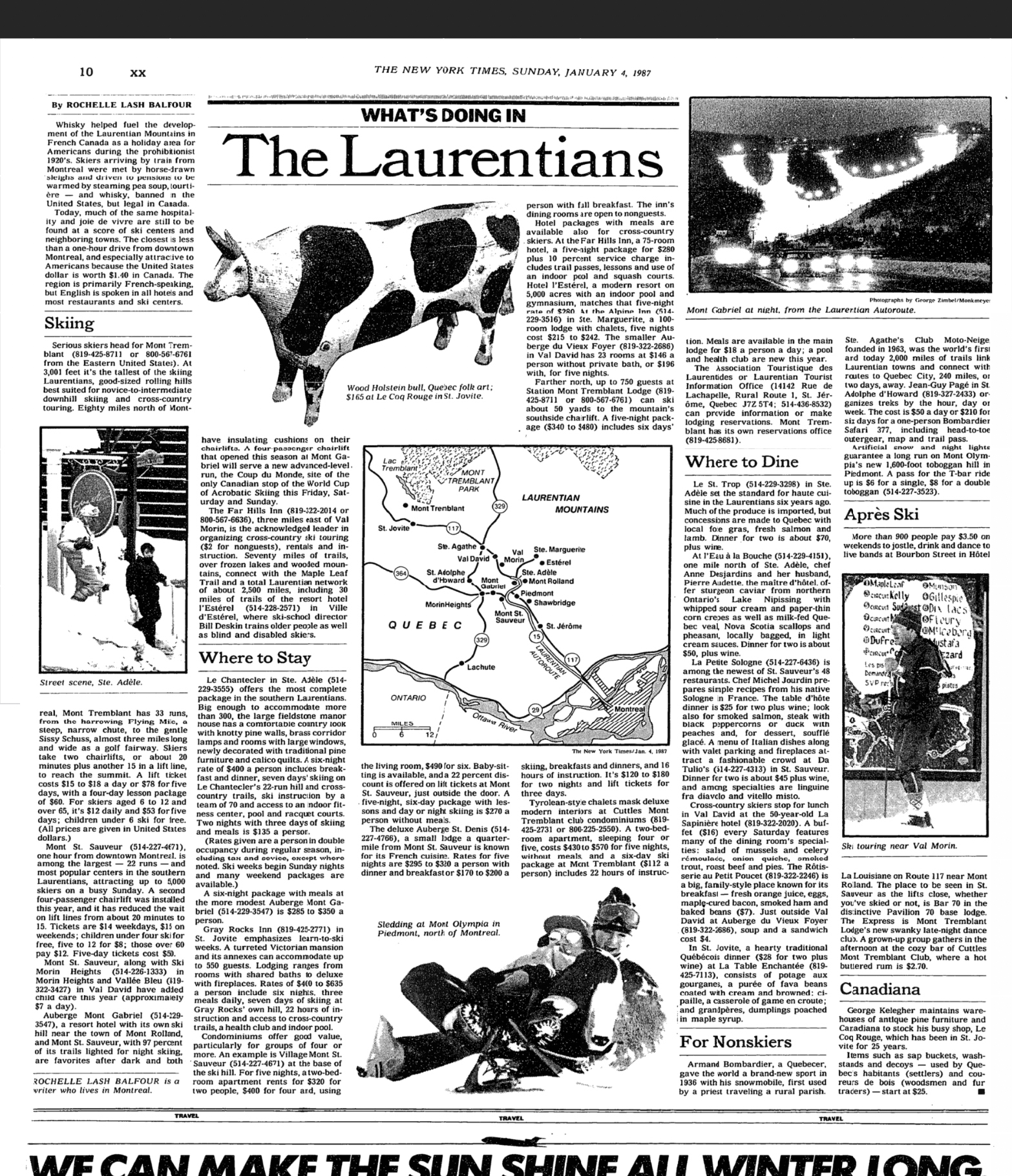 Her travel stories have appeared in Postmedia newspapers/Montreal Gazette, The New York Times, Town & Country, ROBB Report, Everett Potter’s Travel Report, International Herald Tribune, Washington Post, Toronto Star, National Post, Dreamscapes Travel Magazine, The Globe & Mail, Boston Globe, Skiing Magazine, et al.